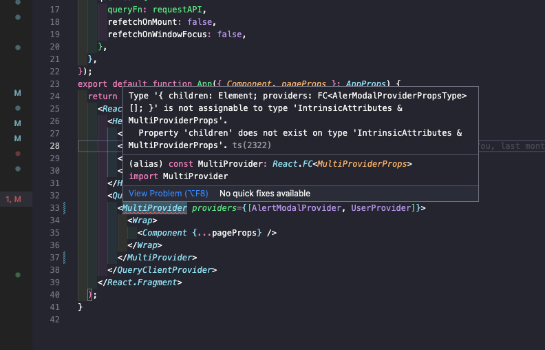 Property 'children' does not exist on type 'IntrinsicAttributes & MultiProviderProps'.ts(2322)
